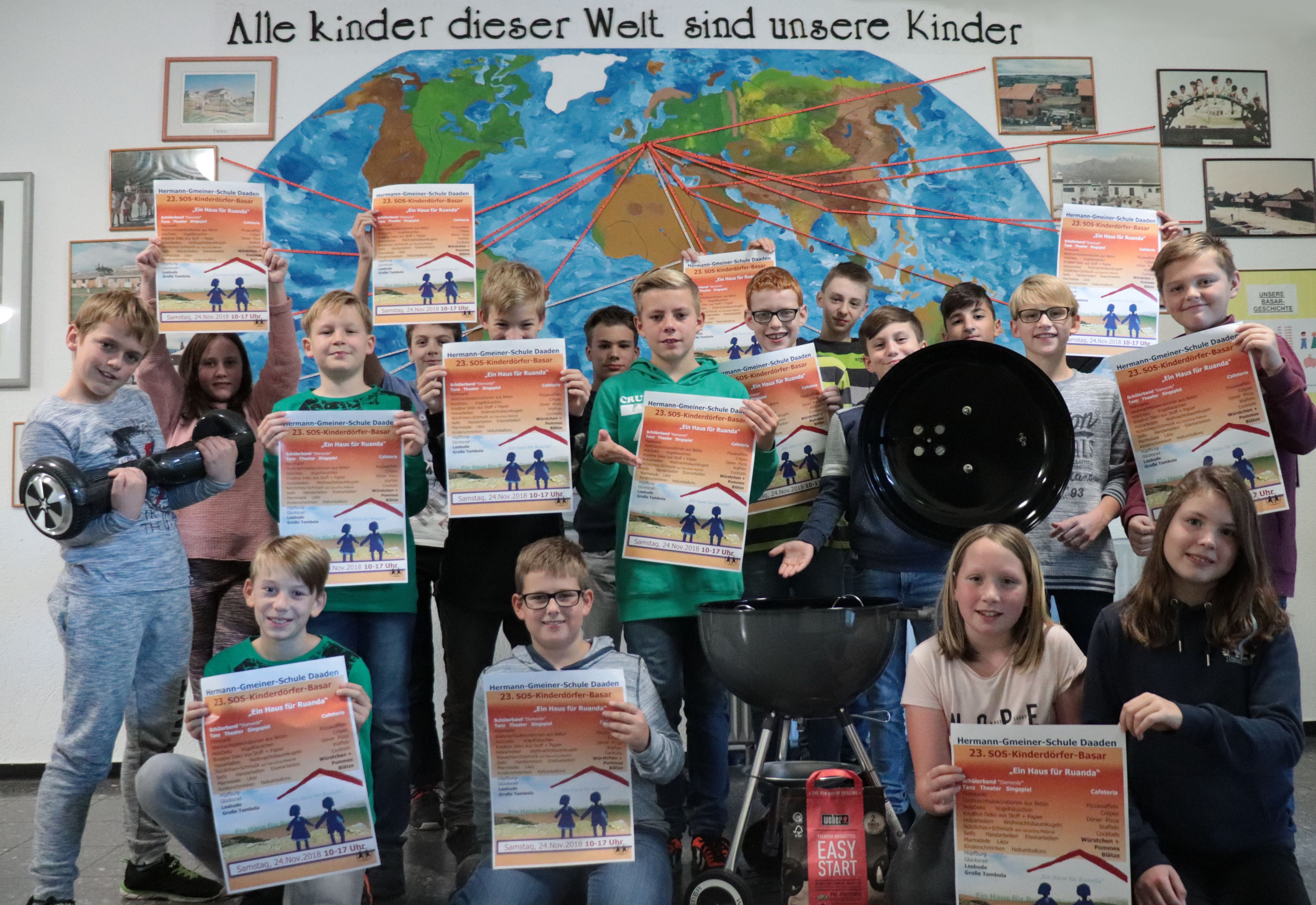 Die Eltern, haben maßgeblichen Anteil an diesem überwältigenden Ergebnis Jahr für Jahr: Sie wirken mit in der Vorbereitung und an den Klassenständen ihrer Kinder oder sind engagiert im Team des Schulelternbeirats oder des Fördervereins. In diesem Jahr wird das SOS-Kinderdorf und Nothilfezentrum in Kigali, Ruanda (Afrika) unterstützt. Das Zentrum wird für eine größere Zahl aufzunehmender Waisenkinder ausgebaut und soll den Heranwachsenden die Möglichkeit einer soliden Schulbildung eröffnen, damit sie später beruflich auf eigenen Füßen stehen können und die Armut ein Ende hat. Unseren Basarerlös werden wir auch diesmal mit einer Vielzahl attraktiver Angebote erarbeiten und mit den großzügigen Spenden der Geschäftsleute aus dem Daadener Land aufstocken. Am Samstag, den 24.November öffnen sich dann um 10.00 Uhr die Türen!