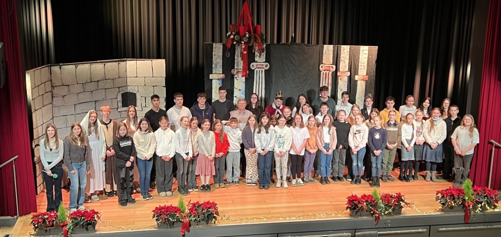 Ein volles Bürgerhaus zeugte davon, dass die „Geburtsgeschichte Jesu“ immer noch die Menschen berührt. Denn „die beste Nachricht aller Zeiten auf der Erde zu verbreiten…“ war das Anliegen des Weihnachtsmusicals: „Der König im Stall“. Unter der Leitung von Roland Imhäuser mit seinem großartigen Engelschor aus Klassenstufe 5 und 6, sowie dem Darstellerensemble der Klasse 10A wurde wochenlang geprobt und diese Geschichte lebendig. Nach einer kurzen Begrüßung durch den stellvertretenden Schulleiter Lars Limbach ging es ins Heilige Land zur Zeit des Kaisers Augustus. Ab hier übernahm das Theaterensemble der Klasse 1oA und die glasklaren Stimmen des Engelschors, die Erzählung der Weihnachtsgeschichte. Gerührt spendeten die Besucher, darunter etliche Ehrengäste, dem gesamten Ensemble, den Bühnenbildnern, der Technik und Leiter Roland Imhäuser Applaus. „Es wurde Weihnachten“, so der O-Ton vieler Besucher. Die Schulgemeinschaft dankt allen Beteiligten für diese sehr gelungene Aufführung, den Besuchern für ihr Kommen und der Stadt Daaden für die Bereitstellung des Bürgerhauses!